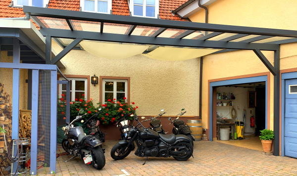 Überdachte Stellplätze für 20 Maschinen, insgesamt ca. 60 Stellplätze